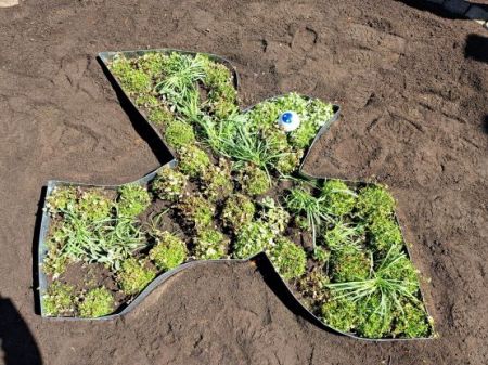 Im September 2022 startete in der BFS2 das Projekt zur Planung und Pflanzung eines Beetes in Form einer Wolke mit Friedenstaube. Die Vorbereitung im Unterricht erfolgte fächerübergreifend. Im Fach Dienstleistung wurden Steckbriefe zu den Pflanzen erstellt und eine Vorlage der Friedenstaube im Maßstab 1:1 geschnitten, die als Schablone auf dem Friedhof dienen sollte. Dazu wurde der Umriss der Taube per Beamer an die Wand geworfen, auf Tapete abgepauscht und ausgeschnitten.