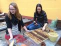 „Die Schülerinnen der Florist-Unterstufe haben passend zur Adventszeit florale Bilderrahmen gestaltet. Dies geschah im Gestaltungsunterricht zum Thema Flächengestaltung. Als Grundlage dienten Rahmen, die mit Zapfen, Zimtstangen, Orangenscheiben, Engelshaar und anderen weihnachtlichen Werkstoffen beklebt wurden. Nach Einteilung in Teams entstanden an einem Schultag diese Ergebnisse.“