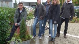 mehr erfahrenAuszubildende des 2. Lehrjahres der Produktionsgärtnerklasse gestalten die Saisonbepflanzung in Kübeln auf dem Schulgelände neu.